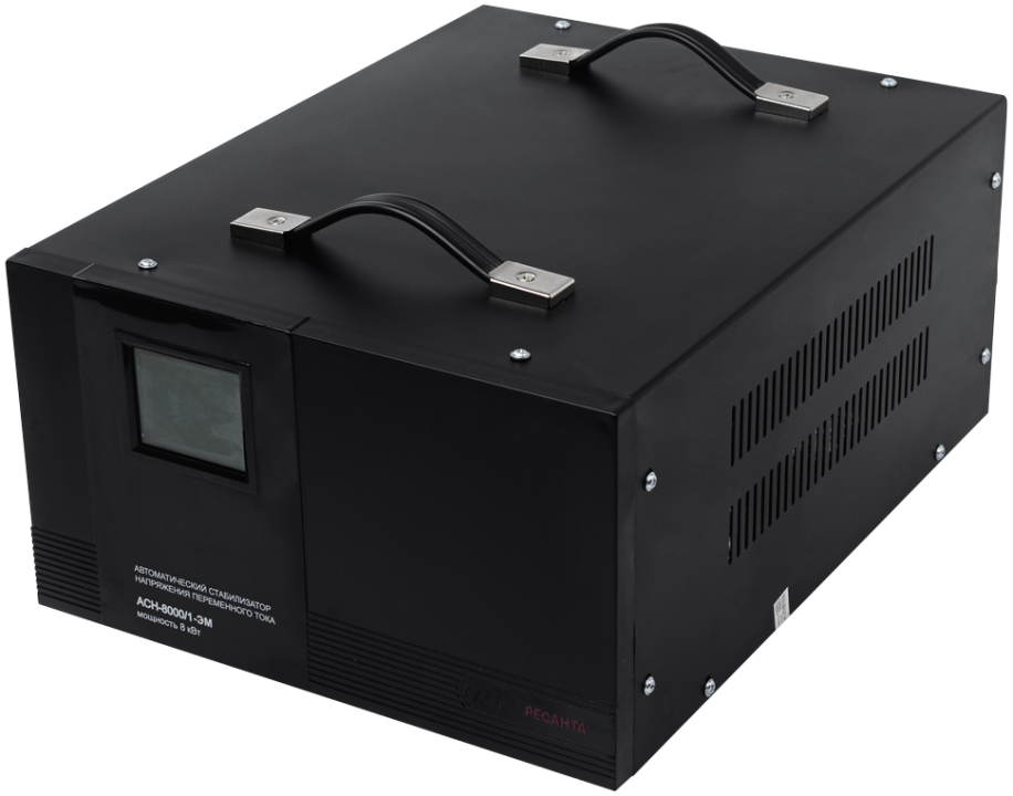 Ресанта АСН-8000/1-ЭМ – модель однофазного стабилизатора напряжения мощностью 8000 Вт. Устройство предназначено для стабилизации напряжения в электросети, защиты газового котла, телевизора, другой бытовой и специализированной техники от поломки.